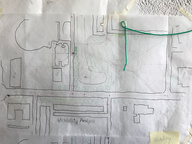 We divide the road system into three layers: Main Road, Secondary Road, and Tertiary Road, and also mark the bus stop. We choose nail and thread as our main material. The red thread represents the main road, orange thread represents the secondary road, yellow thread represents the tertiary road, white thread represents the bus route and the wood clip represents the bus stop.